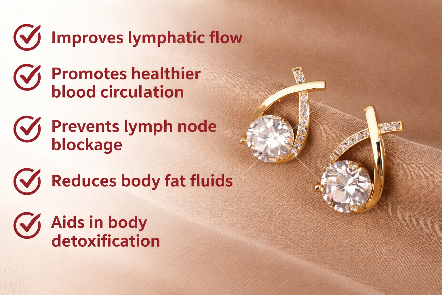 Introducing the ROSOPL™ Lymph Node Germanium Earrings, an extraordinary innovation for healthy, natural weight loss and improved circulation. These earrings not only elegantly adorn your ears but also harness the power of germanium, a unique mineral known for its numerous potential health benefits. The germanium therapy in these earrings emits negative ions, and this effect interacts with the human body’s energy field, stimulating the acupressure points and meridians around the nose and ears.